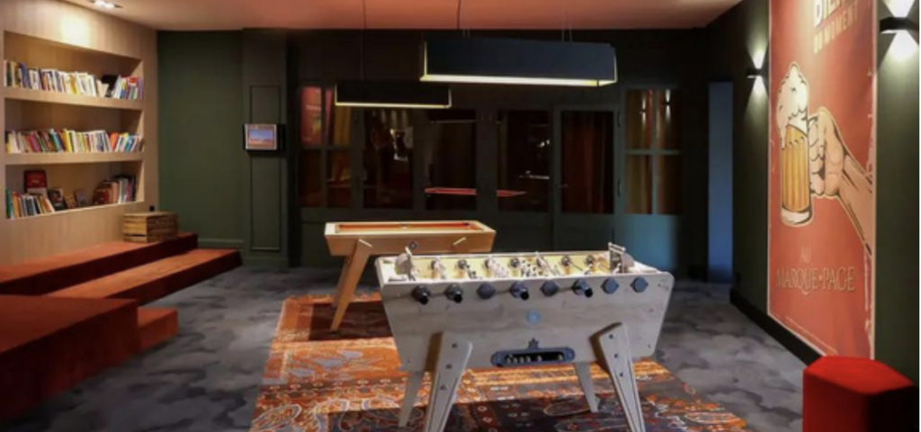 Aménagement intérieur pour les espaces de divertissement, créant une ambiance chaleureuse et accueillante pour une expérience de jeux inoubliable.